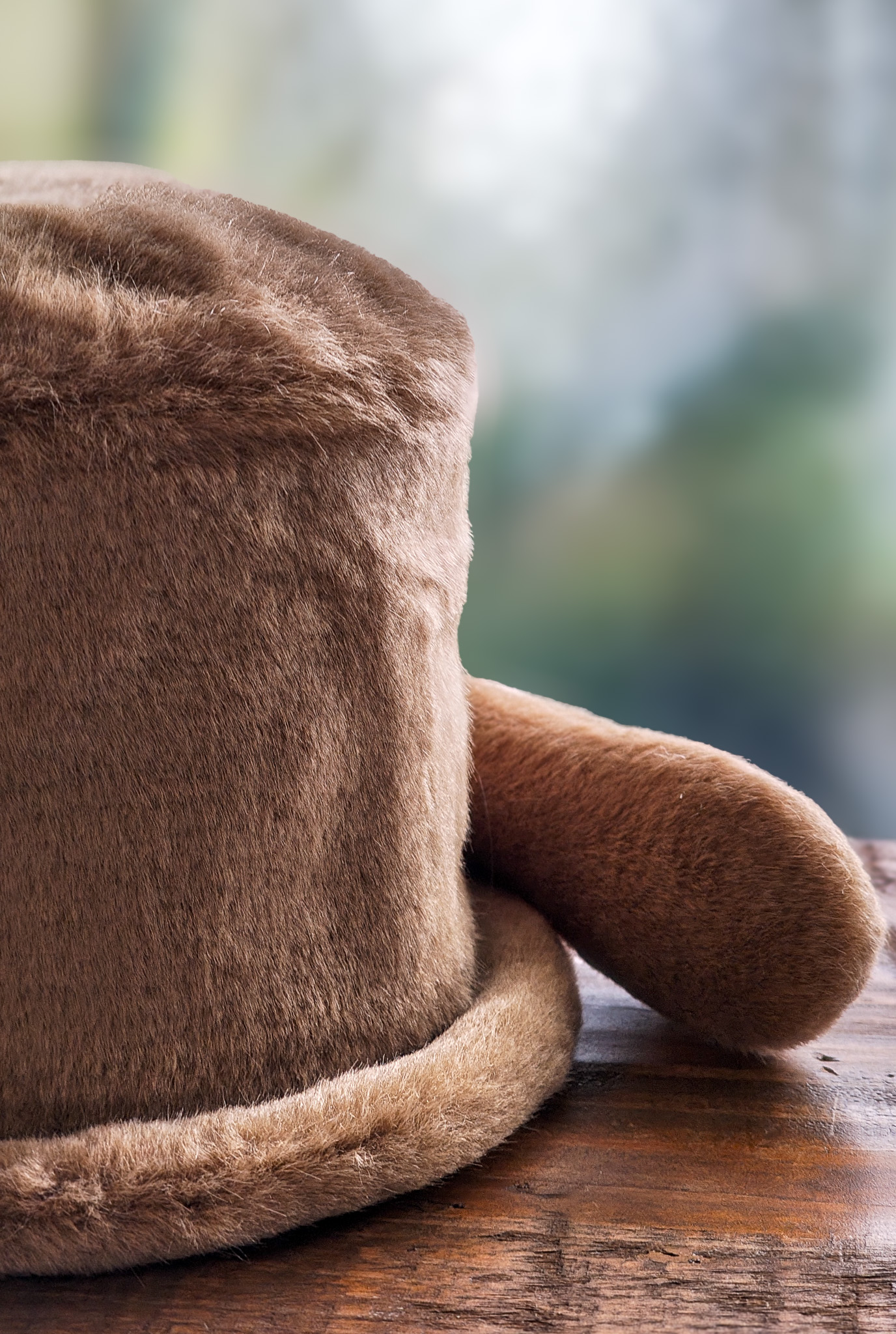 しっぽについているボタンで後ろ側に留める仕様のため、表からボタンが見えることはありません。